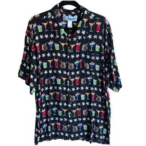 Utility Vintage Men's Button Up Shirt Cocktail Hawaiian Camp Black Size Large