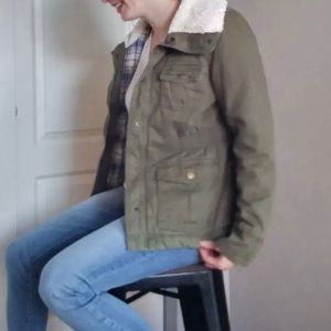 Super cute and cozy. Love the faux wool collar.