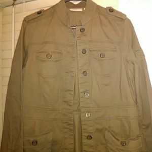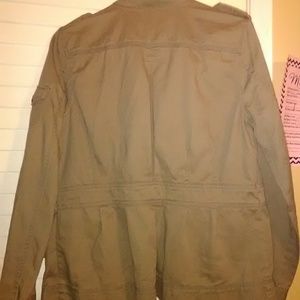 Military style utility lightweight jacket. Multiple pocket's Olive green color. Stylish pleated back.
