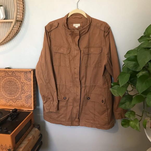 Merona tan jacket. Perfect for spring or fall. Jacket has interior drawstring to cinch waist if desired. Great condition.