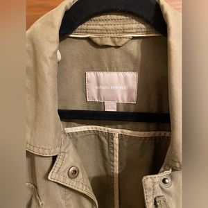 Green utility jacket from Banana Republic. Zipper + snap button closure, 4 pockets with snap button closure. Draw string for adjustable waist.
