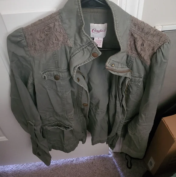 army green with lace on the shoulders utility jacket