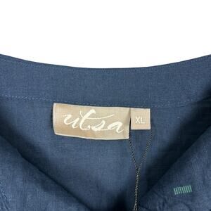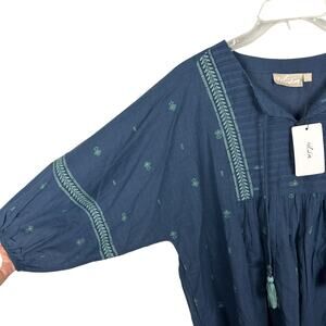 Utsa Blue Bohemian Balloon Sleeve Tassel Embroidered Peasant Blouse XL