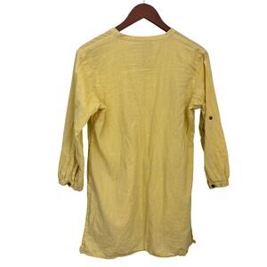 This tunic features lovely embroidery and the butter-yellow color is cheerful and versatile, making it a great addition to any lagenlook style.