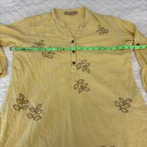 Utsa Embroidered Cotton Tunic Sz L Indie Ethnic Lagenlook Butter Yellow