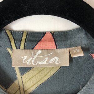 Utsa Kurta Dress Button Front Pockets Floral Gray Pink XS