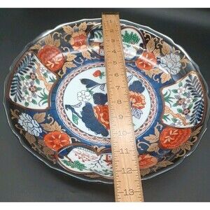 Utsuwa Japan Imari Serving Bowl Chrysanthemum Scalloped Rim Gold 12.25"