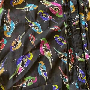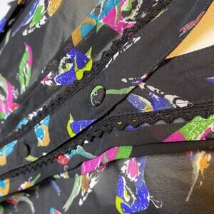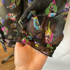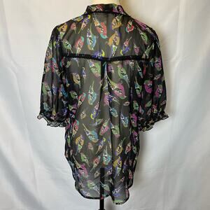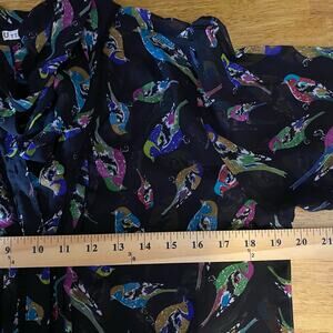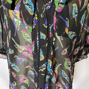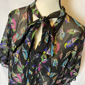 Uttam Boutique Sheer Blouse Size Medium Colorful Bird Tie Neck Button Down