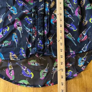 Uttam Boutique Sheer Colorful Bird Tie Neck Button Down Blouse Size Medium