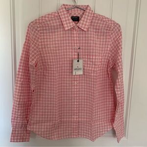UNTUCKit Calina Women's Feminine Wardrobe Staple Button Down Shirt Long Sleeve Pink & White Gingham Print. #Gift Ready #Perfect Holiday Gift #Stocking Stuffer #Gift Under $20 #Gifts for Her