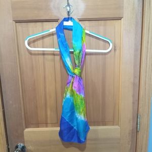 This Uzma scarf is a vibrant addition to any woman's accessory collection. Made of 100% silk, it exudes elegance and luxury. The scarf features a beautiful multicolor design that is perfect for adding a pop of color to any outfit.