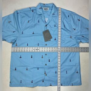 Uzzi Hawaiian All Over Lighthouse Print Shirt Men XXL Blue Short Sleeve NWT