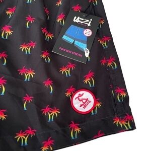 Uzzi Men's Coco Cay Swim Trunks; Black w/ Rainbow Palm Trees; Size M; NWT ($50)