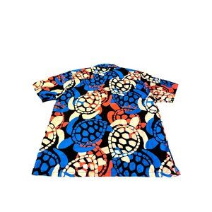 Uzzi Mens Large Button-Up Hawaiian Shirt With Abstract Turtle Shell Print In Red