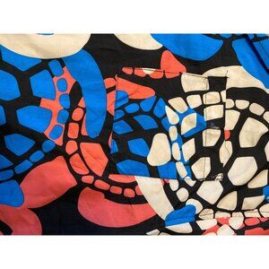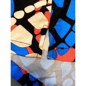 This Uzzi Hawaiian shirt features a vibrant abstract turtle shell design in red, blue, and black. Made from lightweight fabric, it is ideal for casual outings.