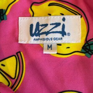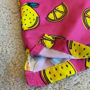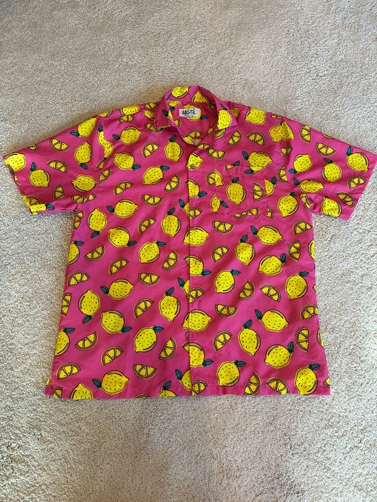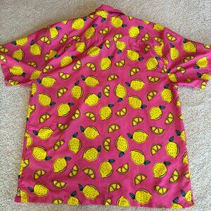 Uzzi Pink with Yellow Lemons Hawaiian Short-sleeve Shirt Top Medium