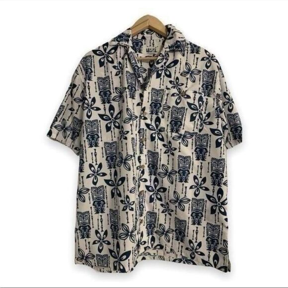 Uzzi Amphibious Gear Shirt Mens M Tiki Blue White Hawaiian Shirt Blue White