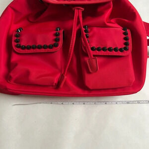 V 1969 Italia Bright Red Fabric Nylon Studded Backpack Bag NWT Medium Purse
