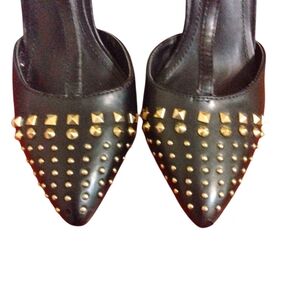 Elevate your look with these chic black heels, designed to add a touch of elegance to any outfit. The vibrant studs and sleek design make them a must-have for fashion-forward individuals. Perfect for making a stylish statement on any occasion.
