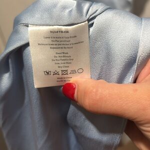 NWT V Chapman June maxi corset dress in Kentucky blue. Discontinued color no longer sold. Wrap around corset silhouette, strapless design. Two very minor pulls, pictured, likely caused by transit or storage. Stock photo added for reference.