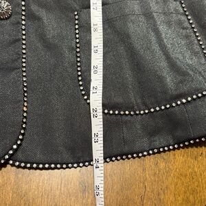 Bold and polished with a touch of sparkle, this V Cristina two-piece set in size XL features a tailored blazer and matching pants in a black denim-look fabric with subtle shimmer. Perfect for Western-inspired events, modern cowgirl style, or elevated statement dressing.