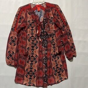 V CRISTINE BOHO STYLE TUNIC GEOMETRIC RED, SIZE S.