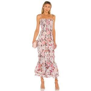 V. Chapman Geranium Rose Smocked Ruffle Floral Maxi Dress