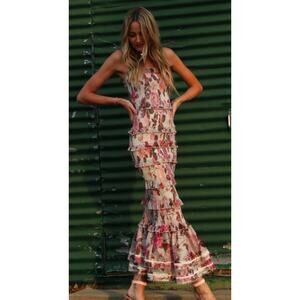 V. Chapman 2 Geranium Rose Smocked Ruffle Floral Maxi Dress