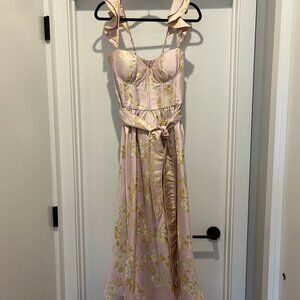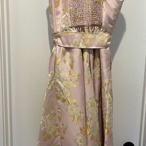 V. Chapman Blush and Gold Floral Midi Dress