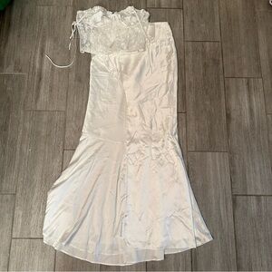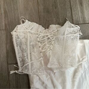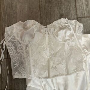 Bridal bride wedding formal corset lace silk satin 2 piece set