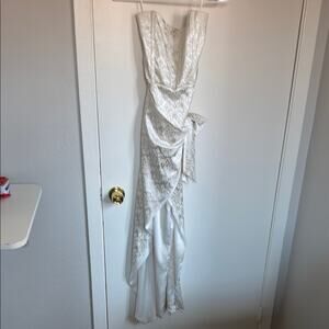 V. Chapman June Corset Jacquard Front Slit Gown Size 4 Ivory