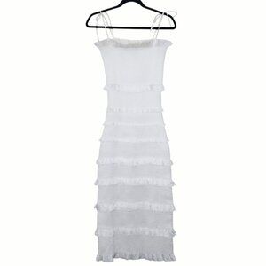 V. Chapman Lily White Smocked Ruffle Midi Dress Bodycon Spaghetti Strap Size 00