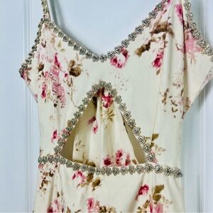 V. Chapman Luna Dress English Rose Floral Beaded Crystal Trim Midi 8 Medium