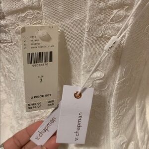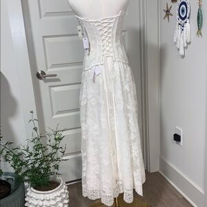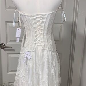 Chic strapless two-piece corset and skirt set with intricate lace. Perfect for elegant events or wedding events!