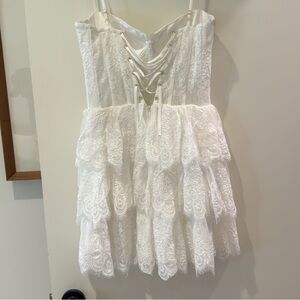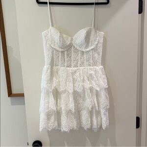 Worn once for my rehearsal dinner. In perfect condition. I don't have the ribbon that is pictured in a couple of the model pics. Super cute and comfortable, very flattering adjustable corset.