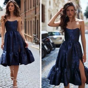 V. Chapman Virginia Tiered Strapless Corset Midi Dress Navy Size 6