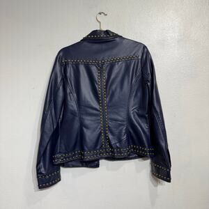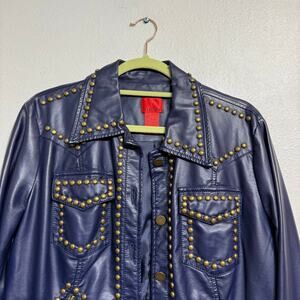 V Christina Blue Faux Leather Jacket Sz M