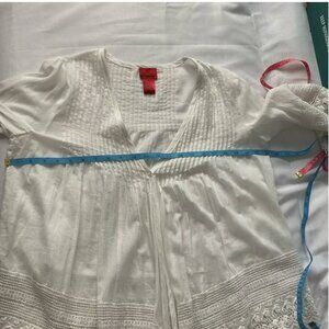 V Christina Sheer White Pleated Crochet Top Blouse Tunic Beach Cover Up Small