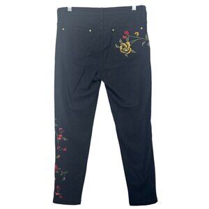 V Christina Womens Jeans Sz 10 Black Embroidered Floral Red Roses Boho FairyCore