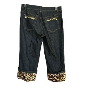 V Cristina Black Denim Animal Print Cuff Embellished Trim Capri Jeans SZ 12P