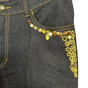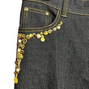 V Cristina Dark Wash Denim Animal Print Cuff Embellished Trim Carpi Jeans