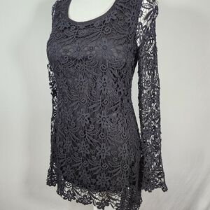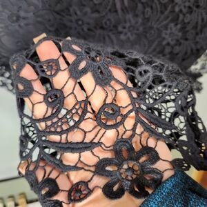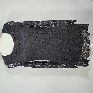 This stunning black mini dress by V Cristina features a sleek sheath silhouette, perfect for cocktail events. The long bell sleeves and crew neck add a touch of elegance, making it an ideal choice for a night out.