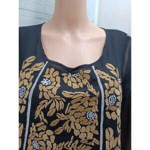 V Cristina Chiffon Tunic Top Sz S Black Gold Semi Sheer
