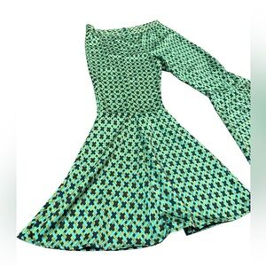 V Cristina Geometric Flare Pants in Green and Blue Size 8