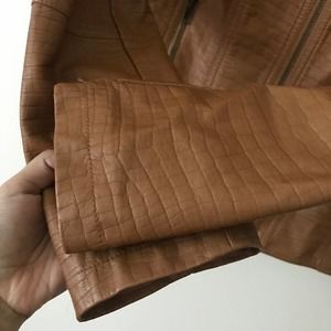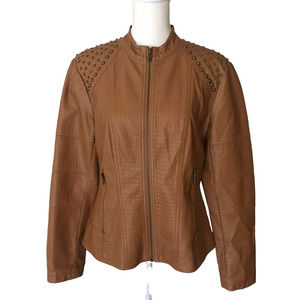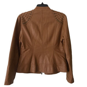 V Cristina Jacket Womens Medium Brown Camel Faux Leather Studded Textured