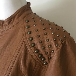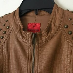 V Cristina Faux Leather Studded Textured Jacket Brown Camel