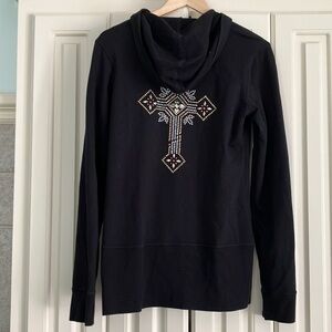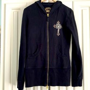 V Cristina Medium Hooded Velour Zip Up Sweater Jacket With Jeweled Designs
