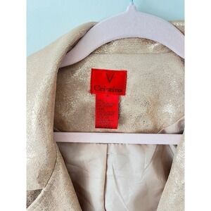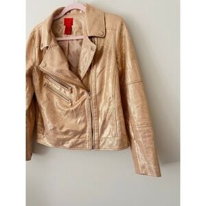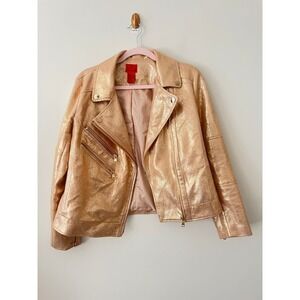 Eye-catching metallic leather. Asymmetrical front zip. Chic and modern design.