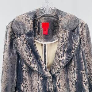 V Cristina Snakeskin Faux Shiny Leather Ribbon Trim Button Blazer Jacket PL
