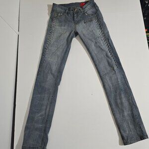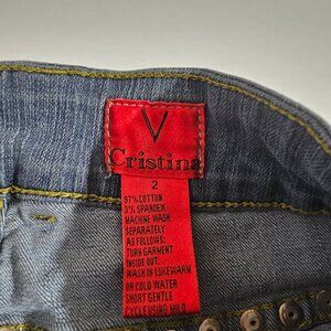 V. Cristina Studded Tapered Blue Jeans, Women's Sz 2, Details Light Distressing